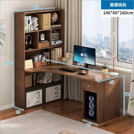 مكتب زاوية L-shaped باللون الجوزي الأنيق 🌰